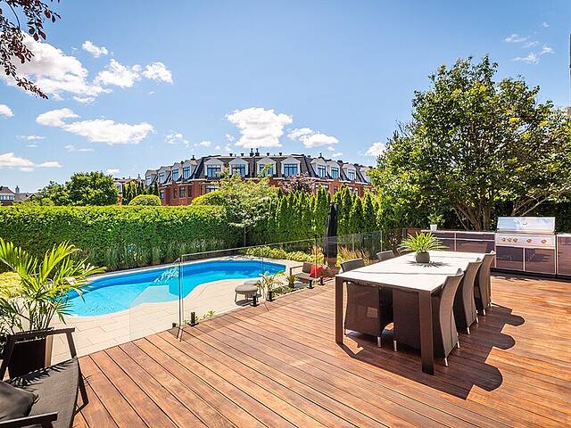 Prestigious living in sought-after Bois-Franc, just steps from the REM station offering rapid, direct access to downtown--ideal for professionals and families alike. This rare detached 3-storey residence features 5 bedrooms, 3 bathrooms, a beautifully landscaped and private backyard with in-ground pool, and a triple garage. Ideally located across from a park and within walking distance of schools, shops, and services, this exceptional home combines refined comfort, generous space, and unmatched connectivity in one of Montréal's most desirable neighborhoods.