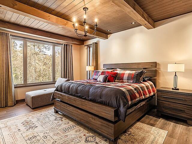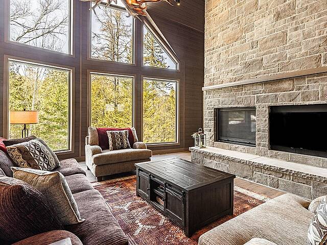Built in 2022 in the heart of Morin-Heights, this exceptional Laurentian retreat blends privacy, modern refinement, and seamless intergenerational living. Surrounded by mature trees and panoramic mountain views, it offers a true 360° connection to nature through expansive windows that flood the home with light. Soaring ceilings, clean lines, and an airy open layout create calm sophistication. Multiple living quarters provide generous privacy while preserving effortless flow--an elegant sanctuary of space, light, and timeless beauty.