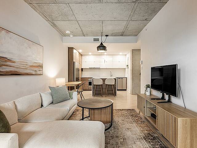 Step into your Griffintown condo. This sun-filled 2-bedroom at Gallery sur le Canal Phase 3 delivers major main-character energy with floor-to-ceiling windows and a huge private wraparound balcony for morning coffee or sunset hangs. Sleek quartz island, two luxurious bathrooms, including a primary ensuite off the walk-in closet, indoor parking and locker = effortless living. Enjoy top amenities like the well appointed gym, indoor pool, roof top terrace with breath taking views, and direct access to the Canal, bike paths, cafés, restaurants, shops and public transit. Action and serenity at your doorstep. This is the vibe--don't miss it!