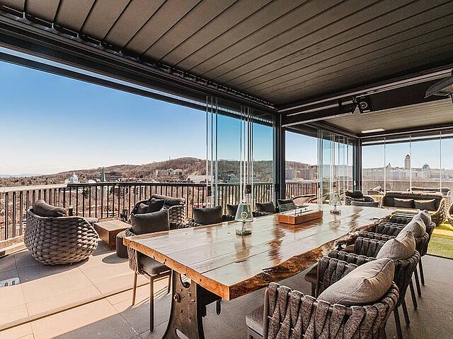 Welcome to your dream Penthouse in the vibrant core of Montreal! This stunning residence offers over 4,000sqft of lavish living space, complemented by a generous 1,800sqft terrace that showcases breathtaking views. Enjoy year-round outdoor living in the enclosed pergola fitted with exterior heaters. The gourmet kitchen features an expansive island, perfect for entertaining. Retreat to your opulent primary suite with a spa-like ensuite bathroom. Additionally, a combined unit offers convenience for a teenager, older parent, or nanny. Experience unmatched amenities with direct access to Midtown Sanctuaire, one of Montreal's premier sports clubs.