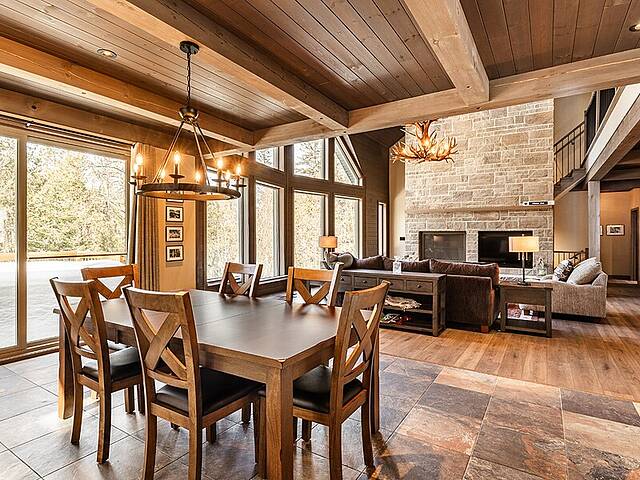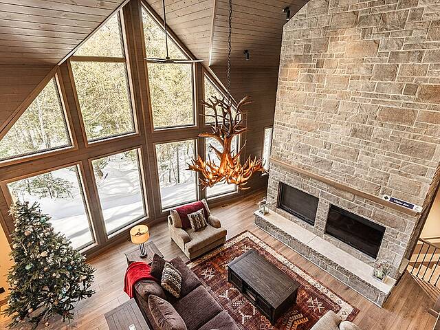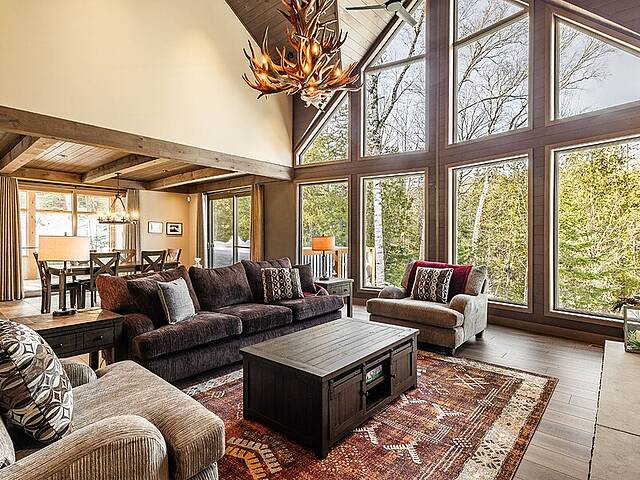 Built in 2022 in the heart of Morin-Heights, this exceptional Laurentian retreat blends privacy, modern refinement, and seamless intergenerational living. Surrounded by mature trees and panoramic mountain views, it offers a true 360° connection to nature through expansive windows that flood the home with light. Soaring ceilings, clean lines, and an airy open layout create calm sophistication. Multiple living quarters provide generous privacy while preserving effortless flow--an elegant sanctuary of space, light, and timeless beauty.