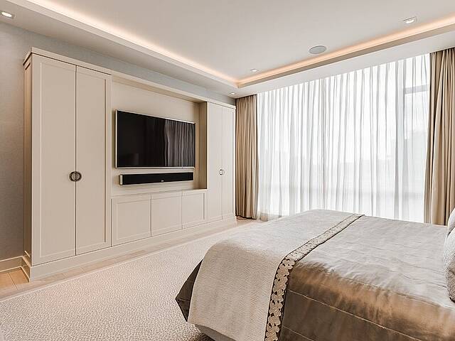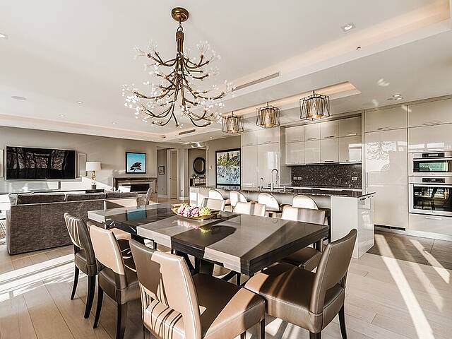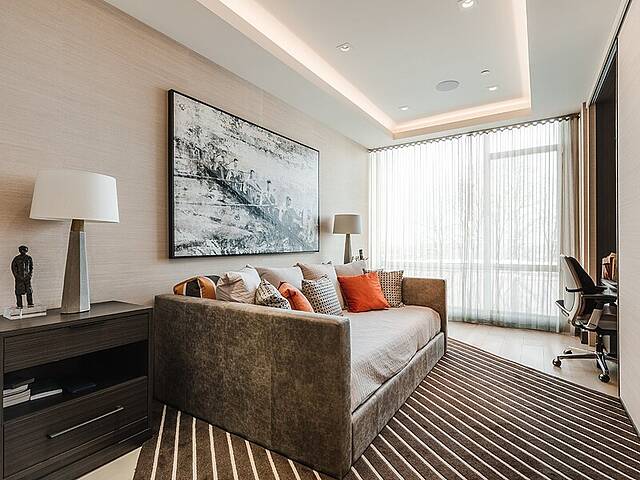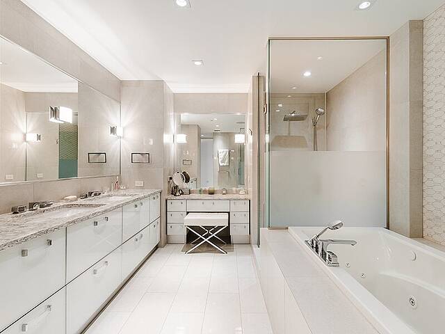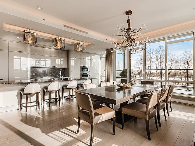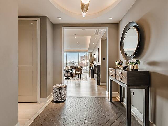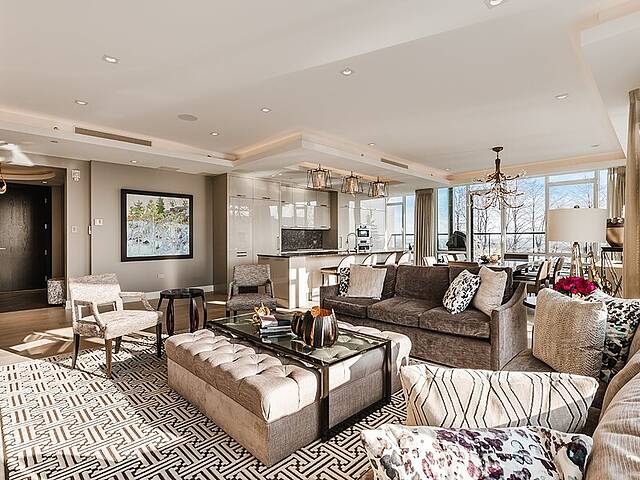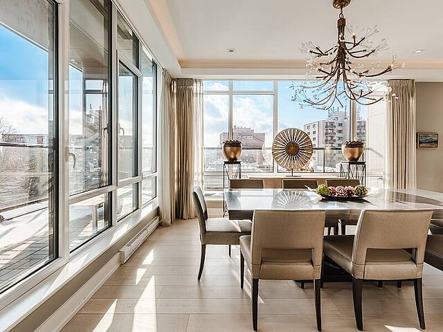 Gorgeous corner condo on the Westmount flats in full-service building, steps to all Greene Avenue has to offer. Selected by the developer for his personal residence, this sunbathed 3 bedroom home was thoughrougly customized by a top designer reflecting a level of luxury not found in other units. Highlights include a brilliant open-concept floor plan with oversized ceilings and expansive windows. The primary suite boasts a spacious ensuite bathroom and generous his-and-hers walk-ins. Other features include custom kitchen and bathroom cabinetry, a southwest-facing terrace with BBQ, electric blinds, 3 rare indoor parking spots and so much more.